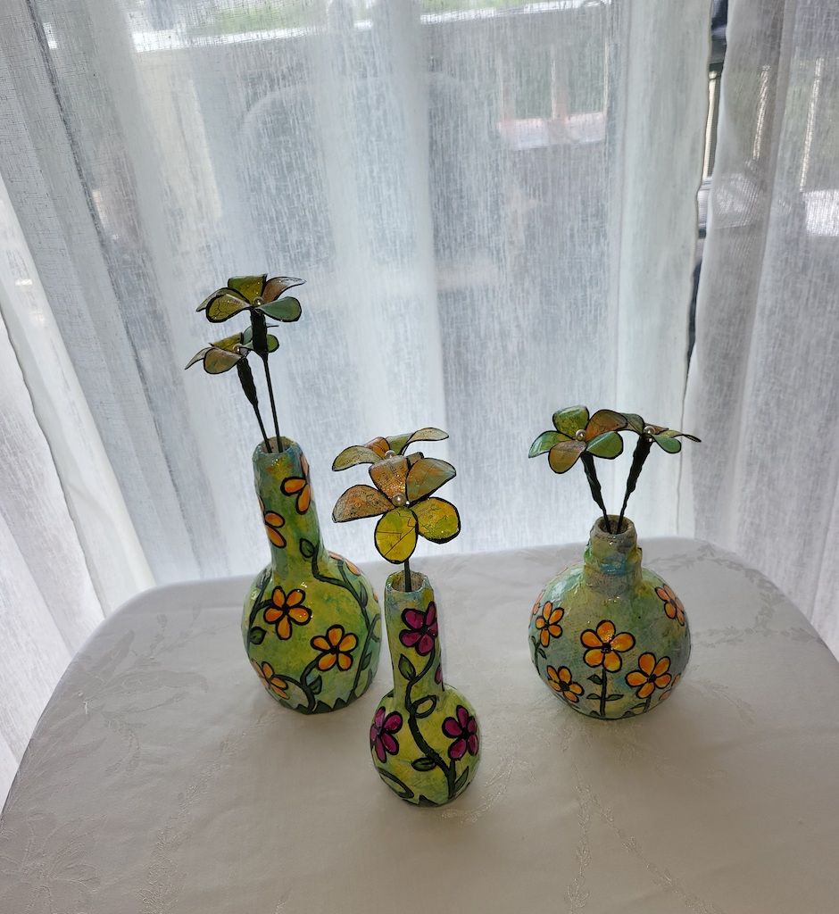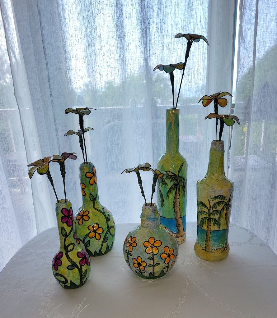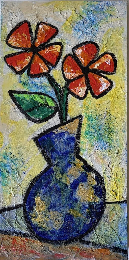 In the work I will be highlighting this month, you will see collection of pieces both 3D and 2D, in mosaic acrylic, mixed media collage, and papier mache’. I hope they will put a smile on your face and, perhaps, bring you some joy.