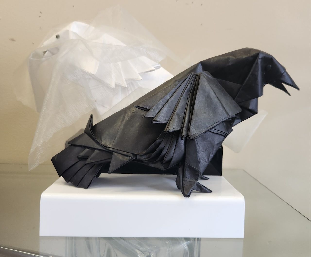 Small domesticated pigs, or pua'a , were first brought to the Hawaiian island by Polynesians around 160 years ago. Some of these escaped their confinement and took up life in the forest. Over time, other (larger) varieties of pig were brought to Hawaii and a lot of cross breeding occurred. This resulted in the uniquely Hawaiian feral pig or pua'a we see today. Most of modern feral pigs have some genetic linkage to the first pua'a and retain the Hawaiian name. They also retain value as a food source, and a symbol for intelligence, cunning, mischief, strength, and stubbornness. There is even a Hawaiian demigod named Kamapua'a , who could take the form of both a boar and a human. In ancient Hawaiian culture, there was less divide between humans, animals, gods, and nature. Humans would have family guardian gods or aumakua. Each aumakua was connected to some animal or other natural phenomenon. Mano (shark), pua'a (pig), pueo (owl), makani (wind), and nalu (wave), are just a few examples of how aumakua could manifest. There were stronger connections between the physical world and the spiritual world. It is that connection between physical and spiritual that I aimed to honor and express in this piece. My pua'a is not a domesticated pig, but a strong and powerful beast. The black represents the physical as many of the feral pua'a are black. The white with the misty veil represents the spiritual, equally strong and powerful. Thank you for noticing my art. shannon