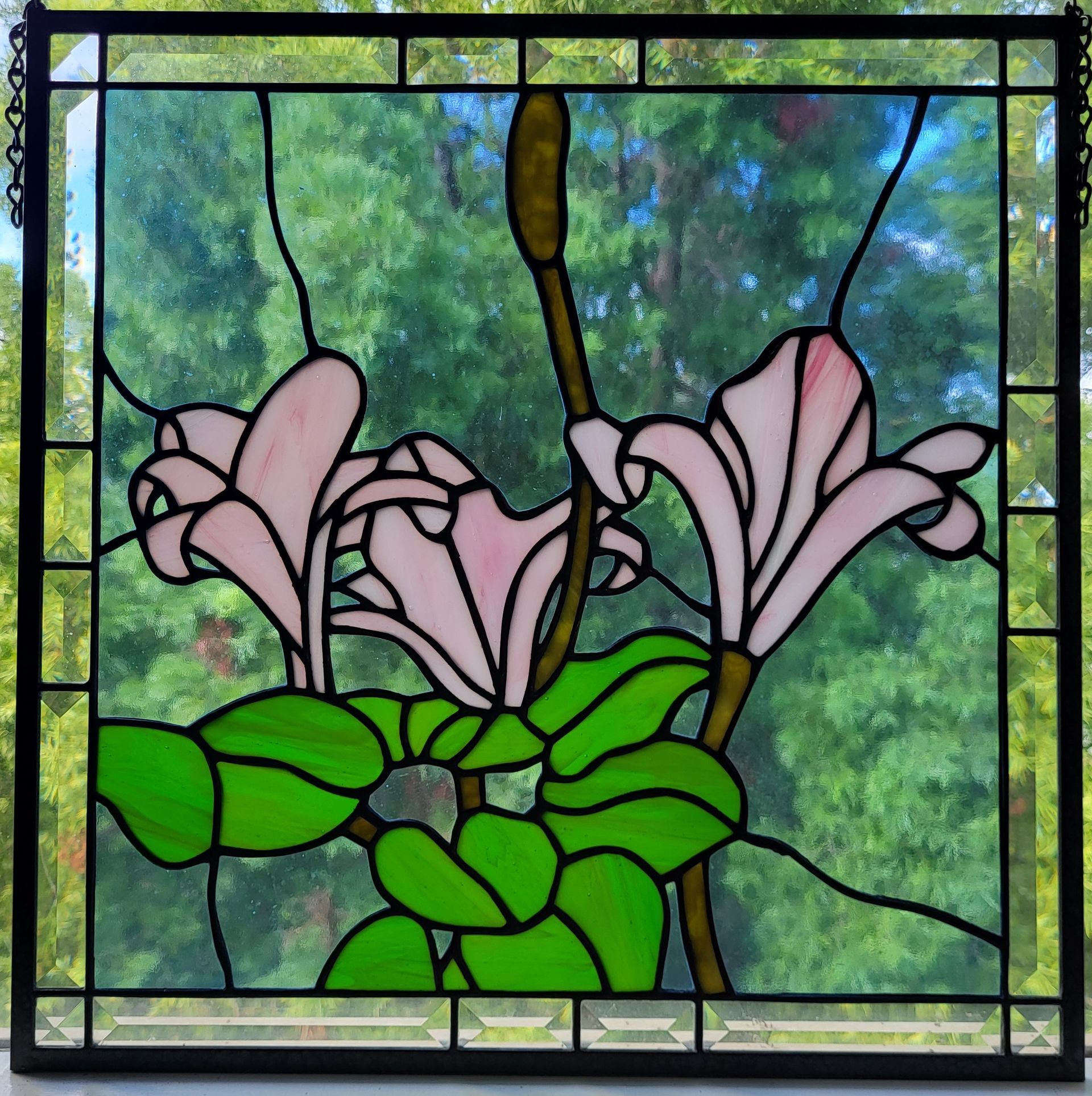 It's hard for anyone not to notice a stained glass suncatcher in the light. It's not surprising that stained glass adorned cathedrals as far back as the 13th century, BCE. Once the novice stained glass viewer gets past the feeling of awe, they might be impressed by how sturdily these pieces of glass are held together, and that the piece appears finished on both the front and the back.