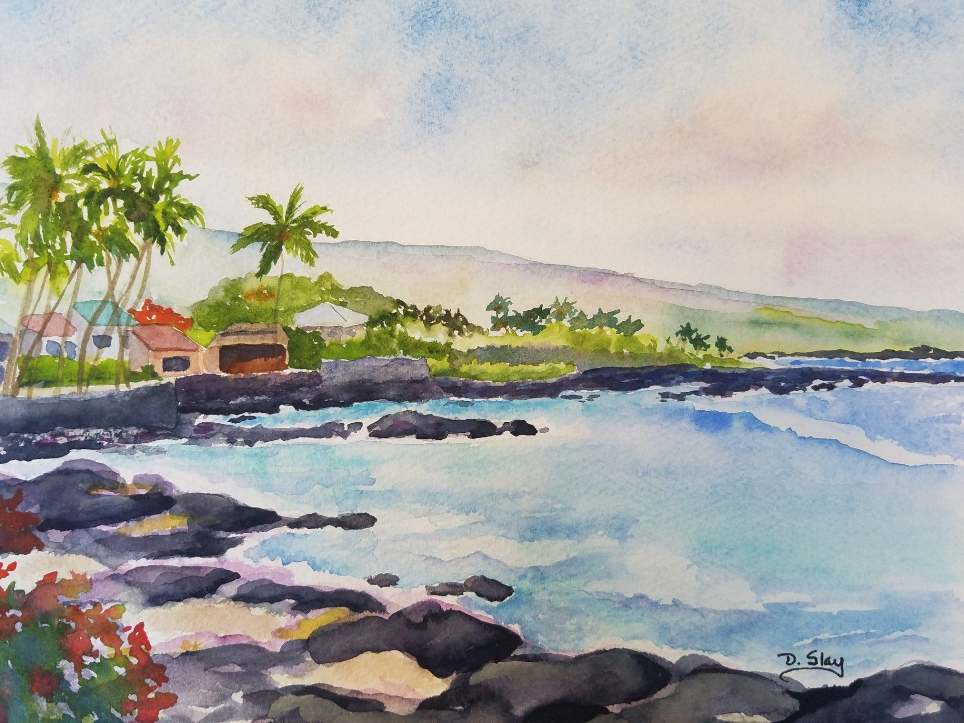 Debbie fell in love with watercolors in 2009 after taking a class in her home town in Georgia. Over the years she has taken classes from various watercolor artists, both on the mainland and the Hawaiian islands. After moving to the Big Island in 2014, the beauty of the islands are her inspiration. The local seascapes, landscapes, and flora are prominent in her works.
