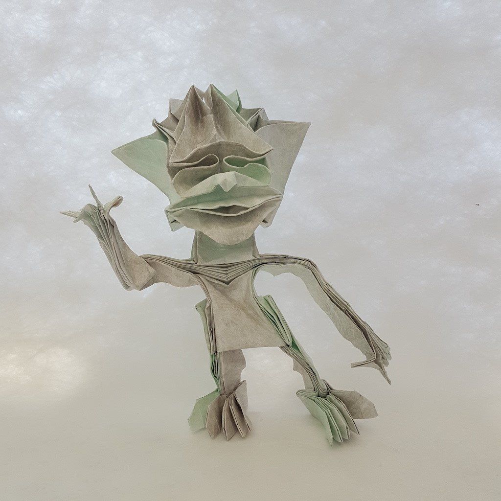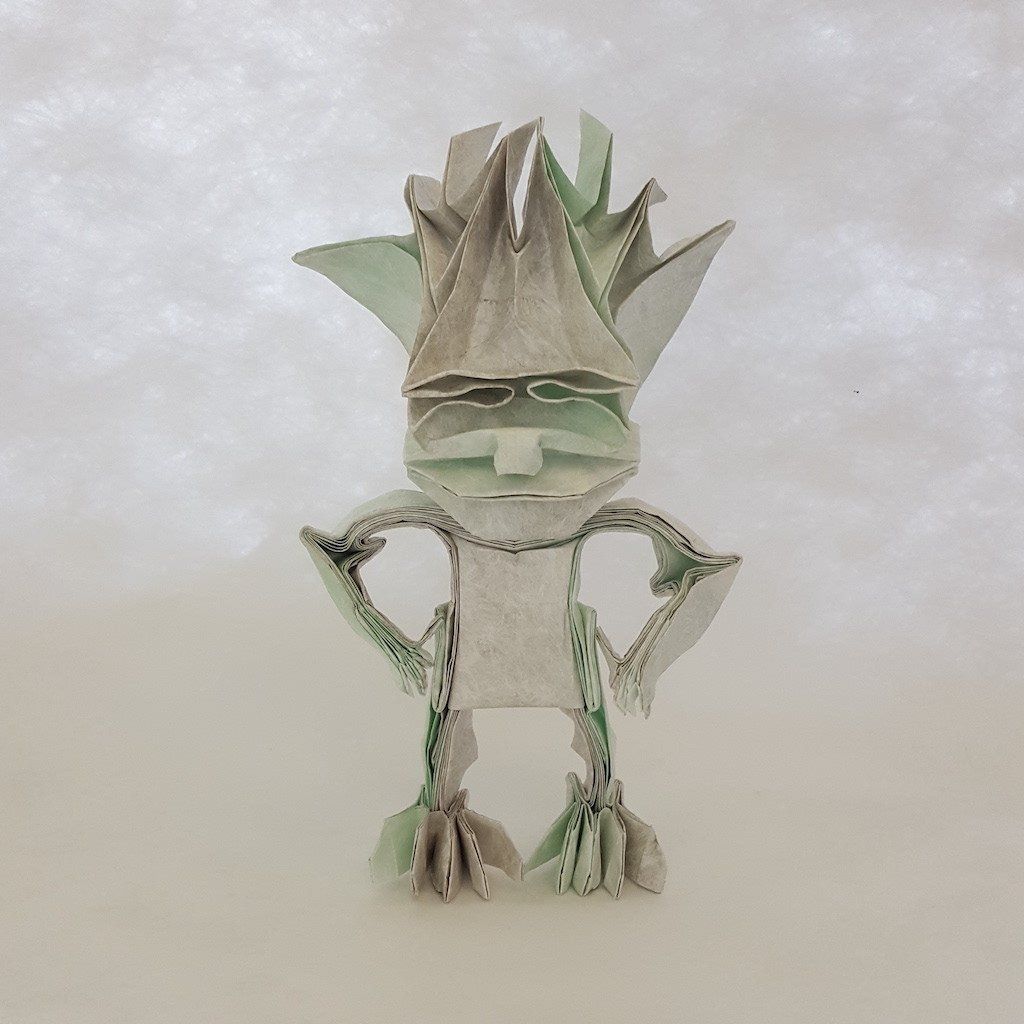“For me, being yonsei means embracing parts of my Japanese heritage as well as having the freedom to evolve. I appreciate the geometric folds of origami design to create a strong structural foundation. However, bringing origami to life requires “listening" and allowing a creation’s story to shape its body language and facial expressions. I spend as much time wiring, gluing, shaping, and sculpting as I spend folding.”