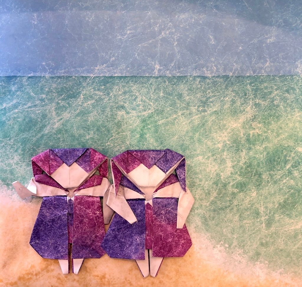 I spend as much time wiring, gluing, shaping, and sculpting as I spend folding. Each piece, whether two legged or four legged, is balanced and stable, display-ready, and resilient for shipping and handling before it leaves my studio.