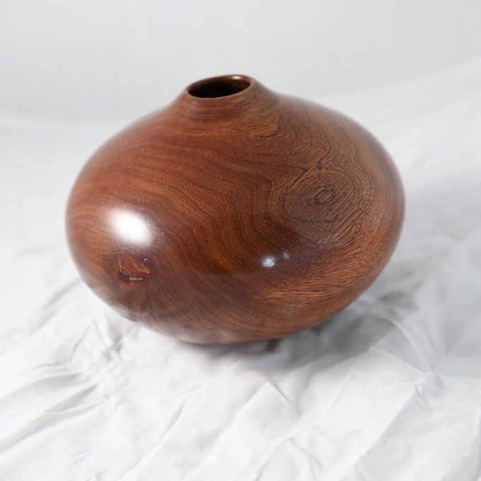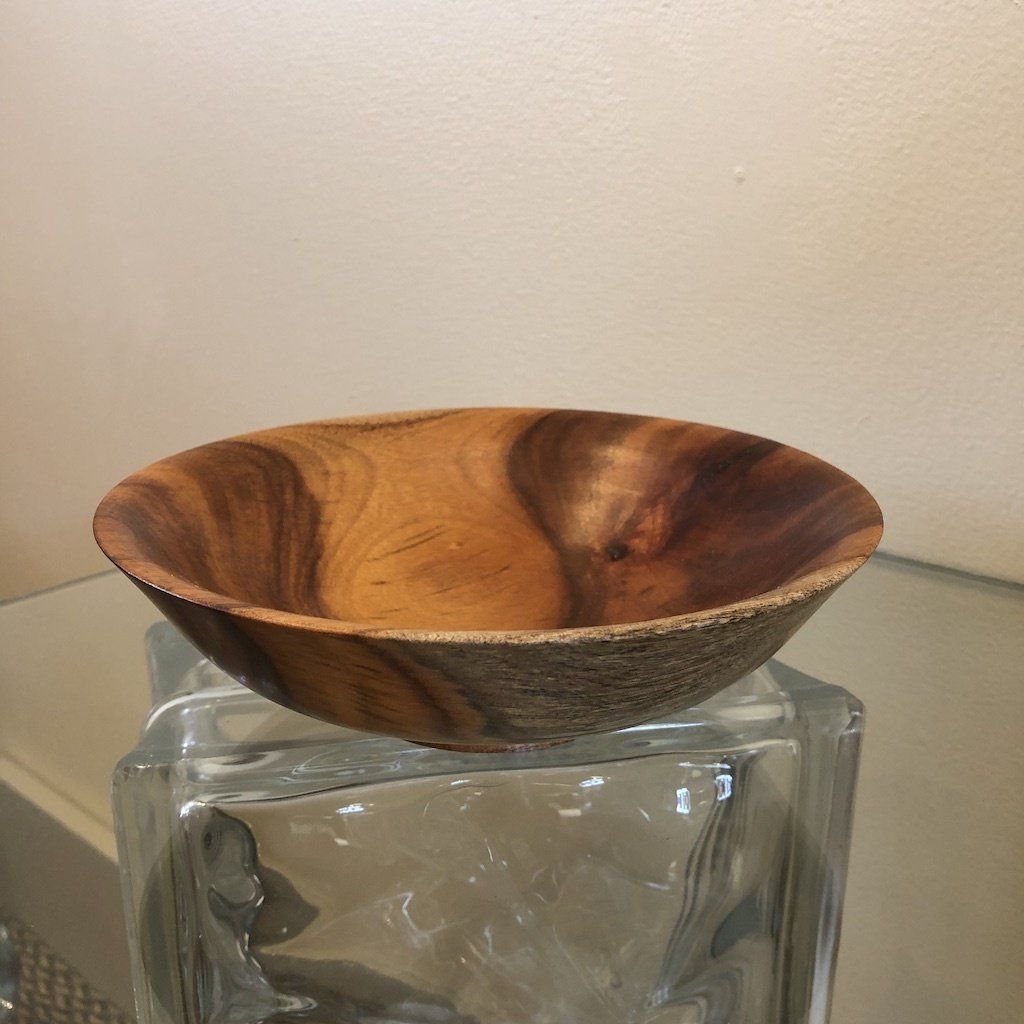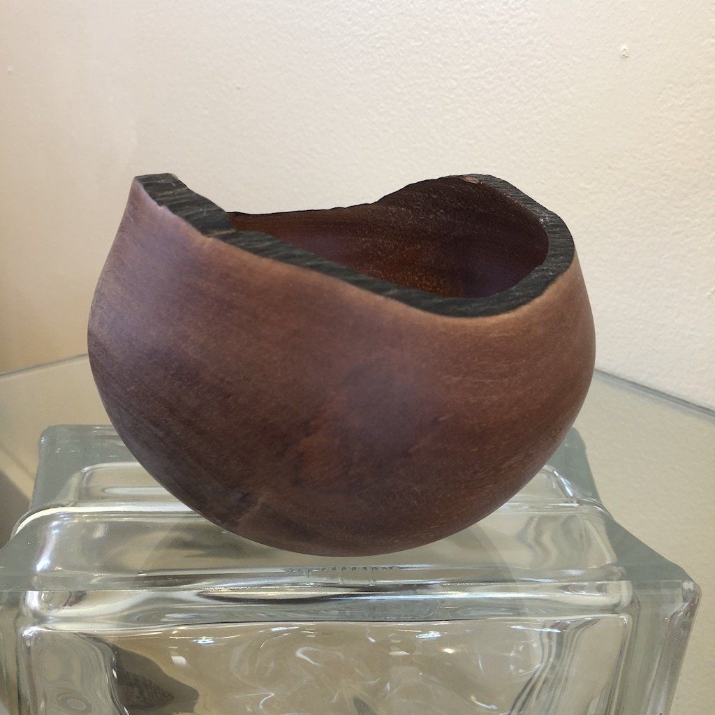 Tom’s other medium is wood turning in his home studio in Kona. He specializes in Hawaiian woods, including Koa, Mango, Norfolk pine, Milo, Monkeypod and whatever nature generously provides. His work includes traditional bowl shapes, such as Umeke, used by Hawaiians for centuries, as well as more modern vases, platters, hollow vessels and spheres. He allows the wood to suggest what shape the finished piece of art will be, always looking to enhance the natural grains and swirls that are loved by collectors of fine wood objects.